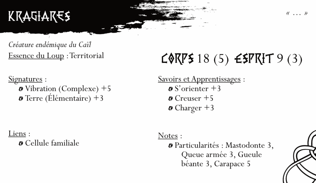 Aussi veillent-ils jalousement sur leur descendance. Chaque cellule familiale possède une voix propre, une Arca de Vibration dont l’écho court à travers les plaines. Ainsi peuvent-ils s’avertir de loin : l’alarme d’un petit attire la venue des parents, et l’adulte assailli appelle son compagnon, qui retourne aussitôt vers le nid. Ceux qui ont entendu leurs appels disent que le désert entier semble alors trembler, comme s’il répondait lui-même à l’angoisse des kragiares.
